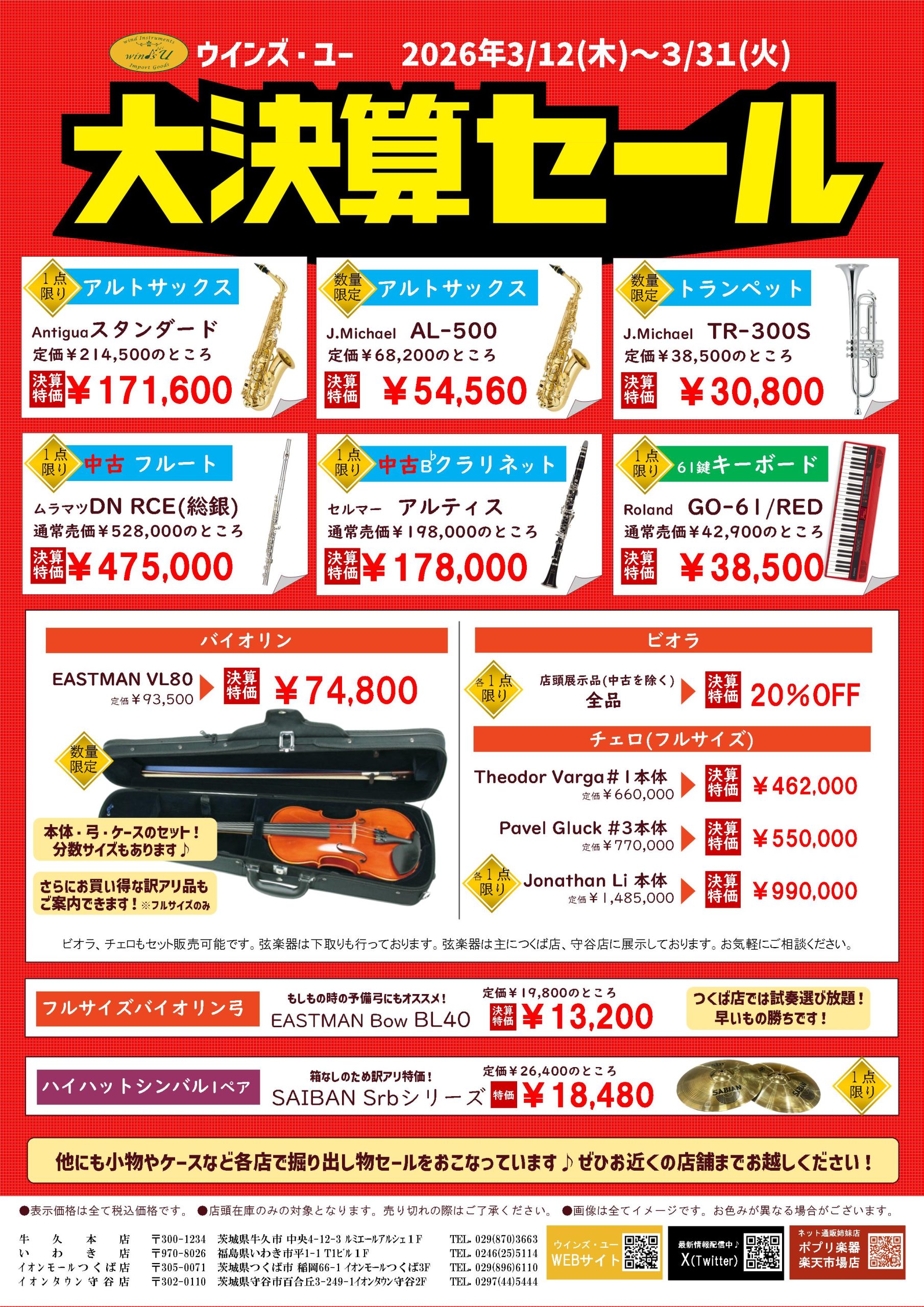 楽器本体を大大大特価でご奉仕いたします!